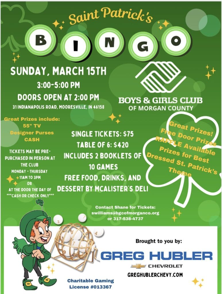 Support the Boys & Girls Club and celebrate St. Patrick’s Day early at a fun Bingo event Mar 4, 2026 Join us for a great time for a great cause! The kids of Morgan County need your support!