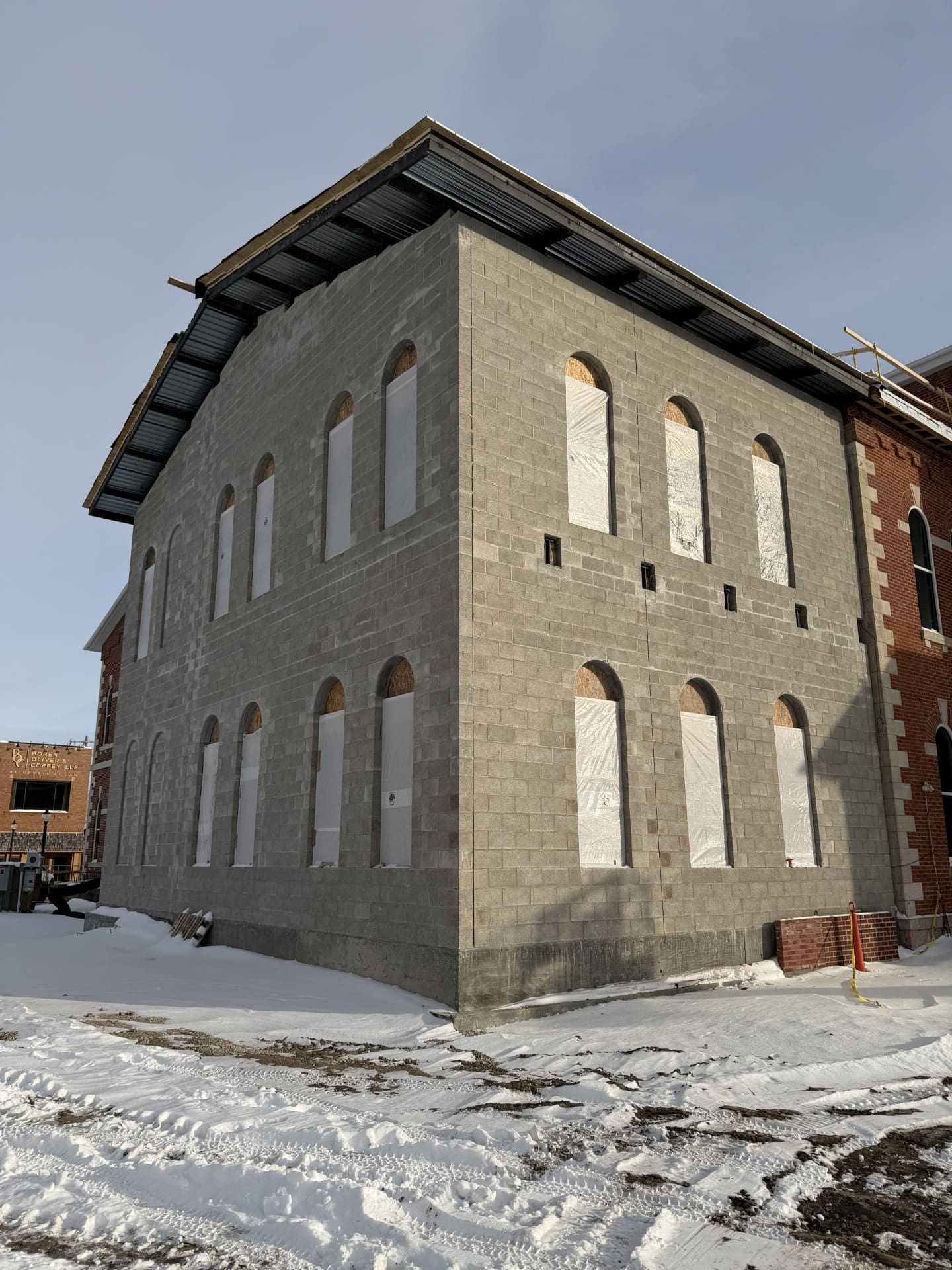 Construction on the renovation of the Morgan County Historic Courthouse is continuing through the winter months. After sidewalks and parking were turned over in November of 2025, demo and renovation work inside the building has been ongoing.