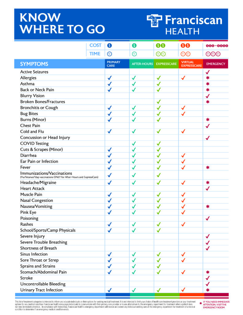 Get In. Get Out. Get Better. Franciscan ExpressCare locations are here for you! Jun 4, 2025 Click here to see locations and hours.