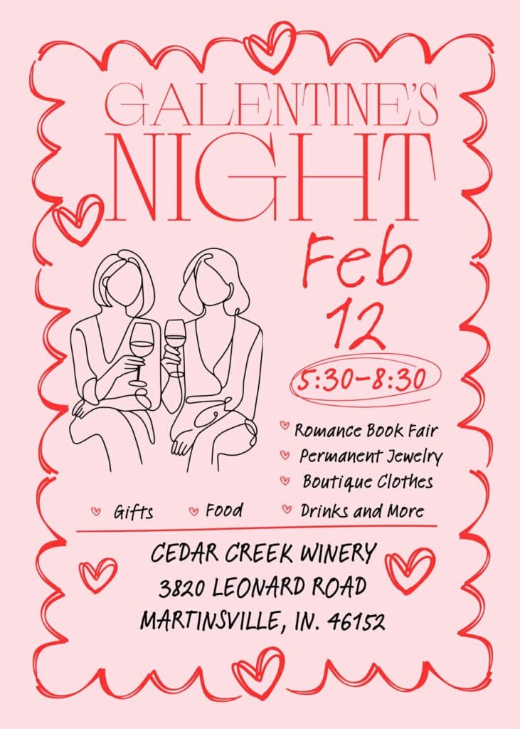 Grab your best book-loving gal pals and join us @ Cedar Creek Winery for Galentines Day Romance Book Fair on Thursday, February 12th, from 5:30 pm-8:30 pm.