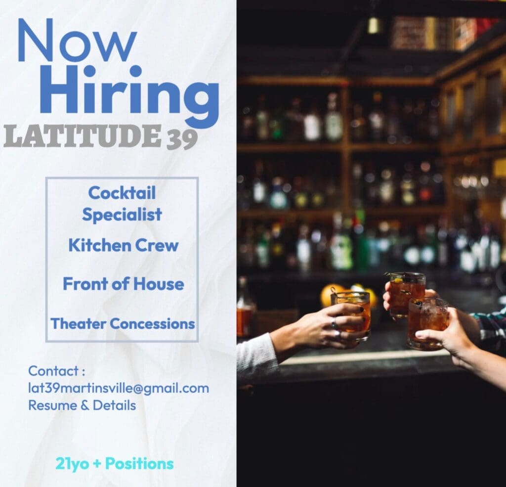 Due to the nature of the business(es), we are searching for 21-year-olds and over. Alcohol serving permits and ServSafe permits (Kitchen Crew) are preferred at the time of interview. For further information and inquiries, or to send your resume, please email Kelsy at lat39martinsville@gmail.com.