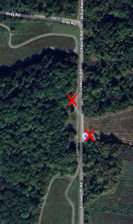 Park at either location marked on the image below.